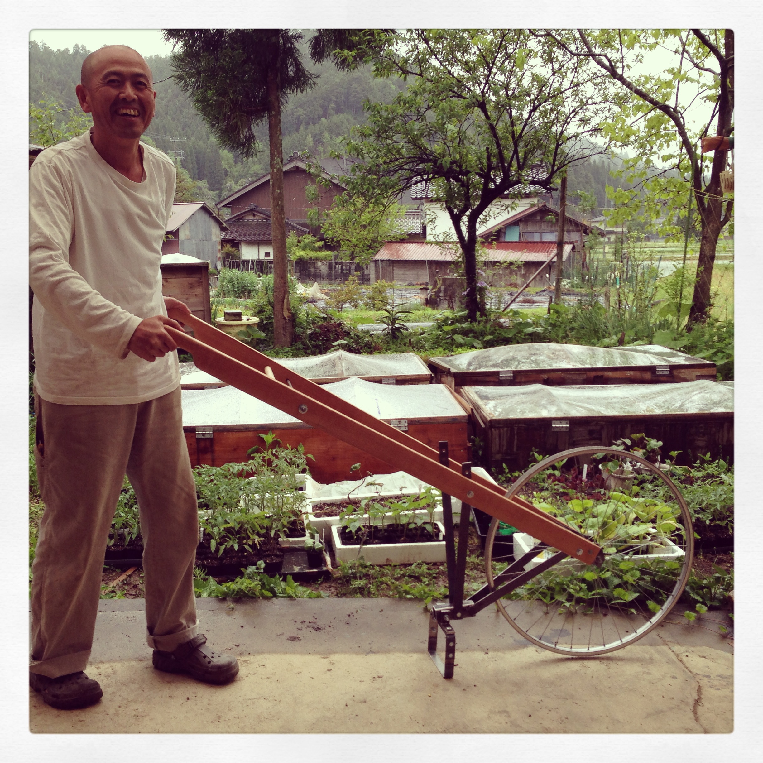 Meet our newest garden family member, Kuwa-chan, our new wheel hoe. She is a one-of-a-kind in Japan with custom-welded parts from Orchard Hill Farm in Ontario, Zenryu-made handles, and a recycled bike wheel. All cleverly assembled for super-hero stirrup hoe magic to happen. We’ve been waiting for months!! So happy!!!!