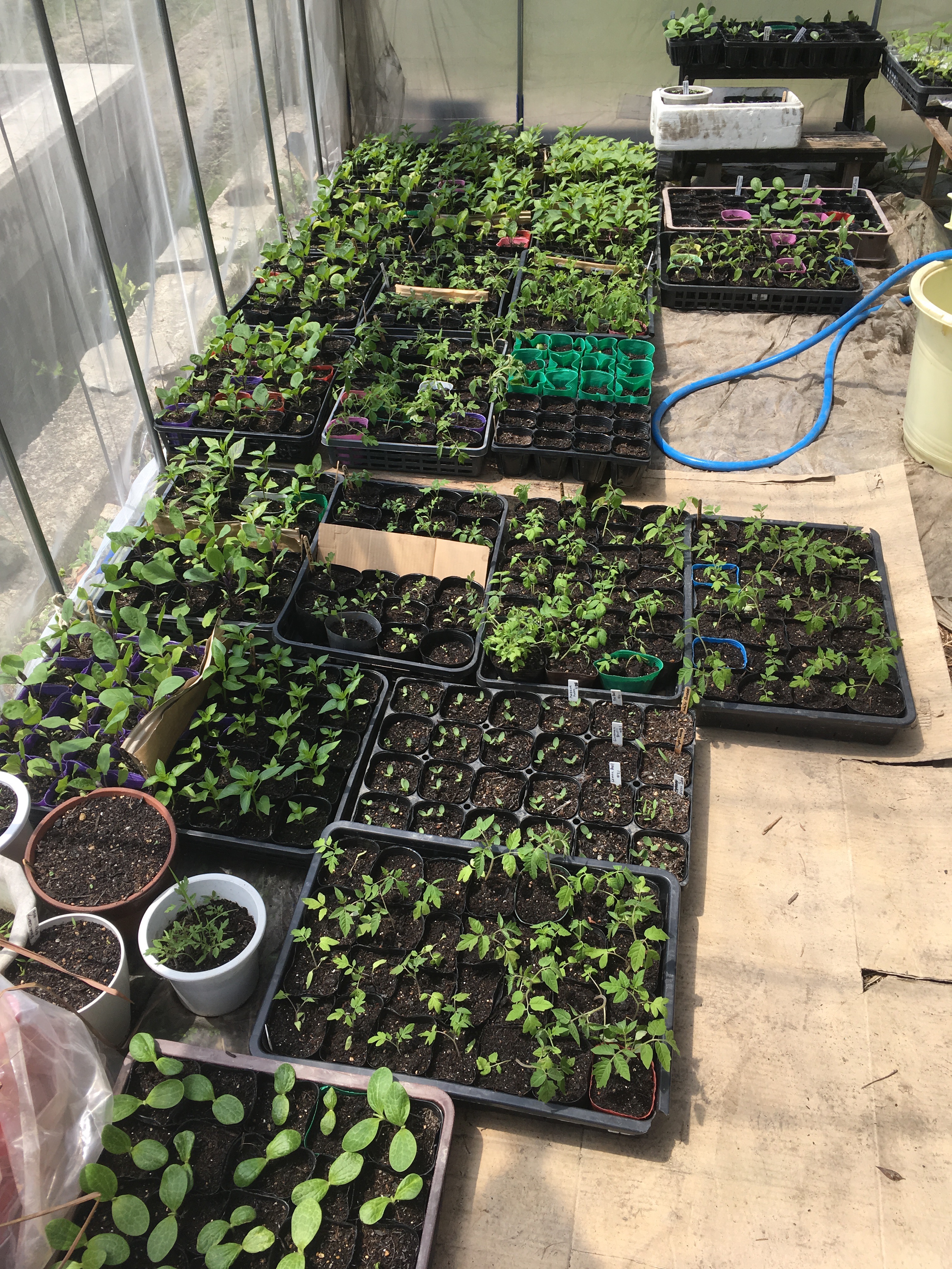 This is our best spring at Hello Farm Organics to-date. We’ve managed to plant all our seedlings on time this year, as opposed to a month late in past years. We are a bit notorious for planting very leggy tomato seedlings because we simply cannot get them in the ground quick enough. But this year, we increased our WWOOFing support to include 2 volunteers at a time, which has made all the difference. The expression, “many hands make light work” really applies here. In one week alone we got all out eggplant, peppers and tomatoes properly staked, supported and trellised before they flopped over from any heavy winds. A big thank you goes out especially to Anna and Johan from France 🙂 We’ve also reduced our number of harvest days this spring to open up our Saturdays as “fieldwork days” instead. This has meant 4 sets of hands (sometimes more) were on deck every Saturday for most of May and June. This made a huge difference in getting garden beds ready, seeding and transplanting done, potting up seedlings and weeding on time. With a small shift in our schedule, we will likely reap the benefits later on in sales because our yield should be higher due to less stressed out plants and less weed competition. Hooray!