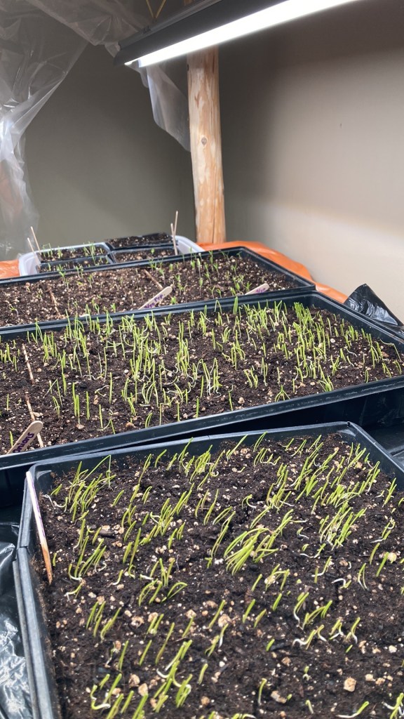 Our goal this year is to just grow! Experiment. Build our resources. Try selling at a farmer’s market. Find customers. Fail and succeed. Make lots of observations and then fine tune our crops for the following year. In this way, we can observe and select the most suitable crops for this soil, land, climate and market. We have over 200 varieties of vegetable seeds ready to go! We have already seeded eggplant, peppers, bulb onions, bunching onions, basil, sage, marigold, parsley, celery, garlic chives, and leek under grow lights. In the next few weeks we will start some brassicas like cabbage, Nappa cabbage, broccoli, and probably over 20 varieties of tomatoes.
